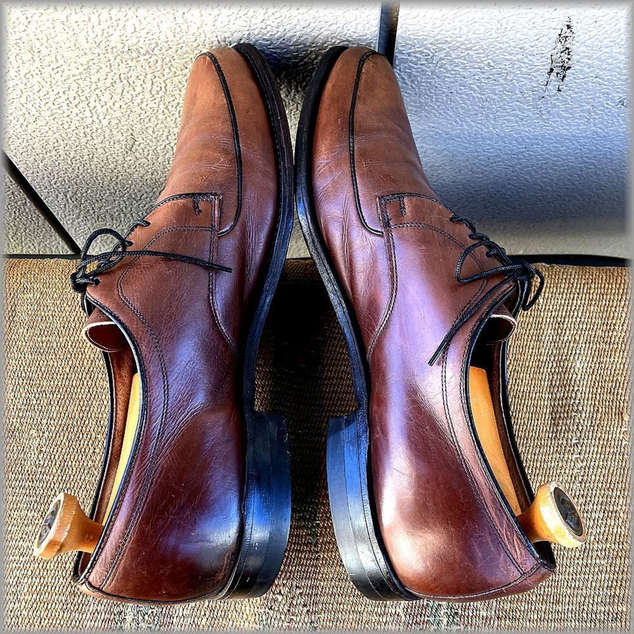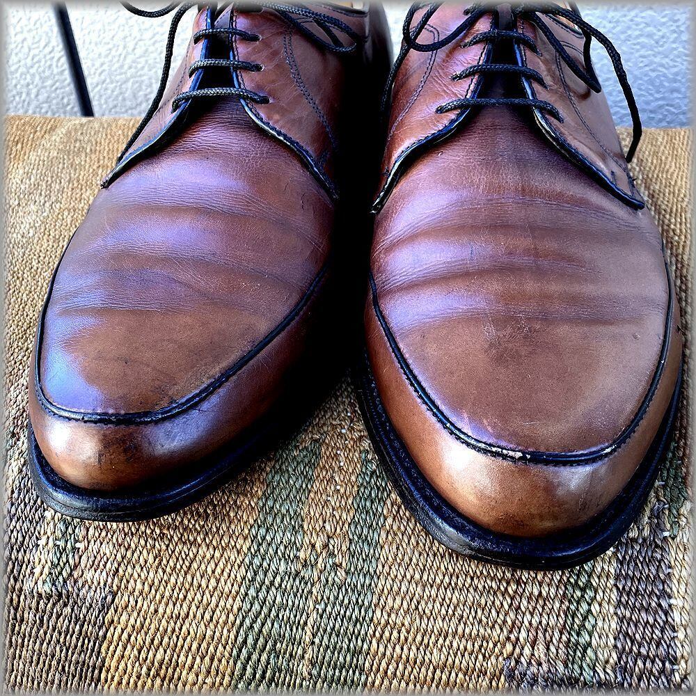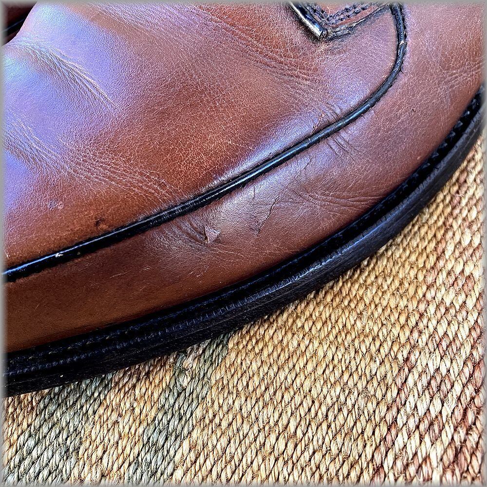 USEDです。使用によるレザーの履きジワやキズやクラックがあります。アウトソールに多少の減りはあります。状態が心配な方は店頭でご確認ください。