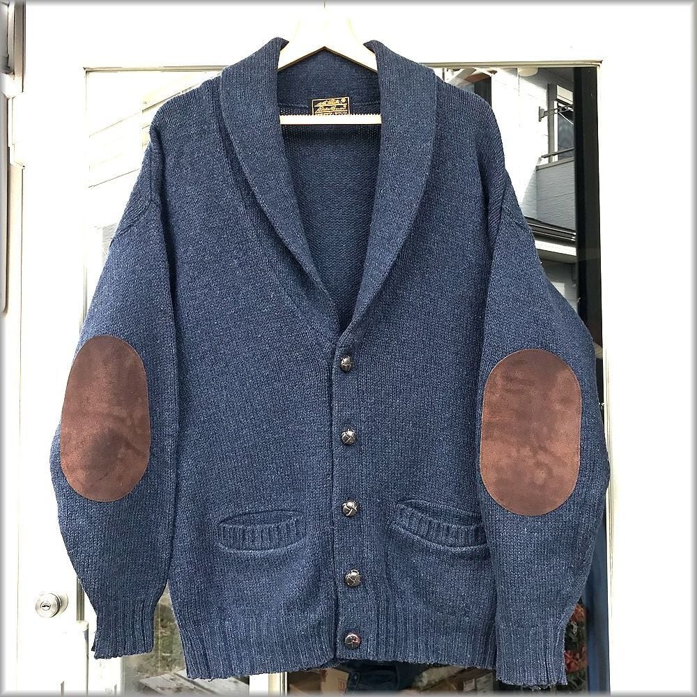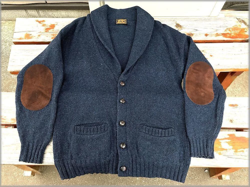 ★エディーバウアー 80s 黒タグ ショールカラー カーディガン スエード肘当て★検索 ビンテージ 70s 90s セーター ニット ジャケット