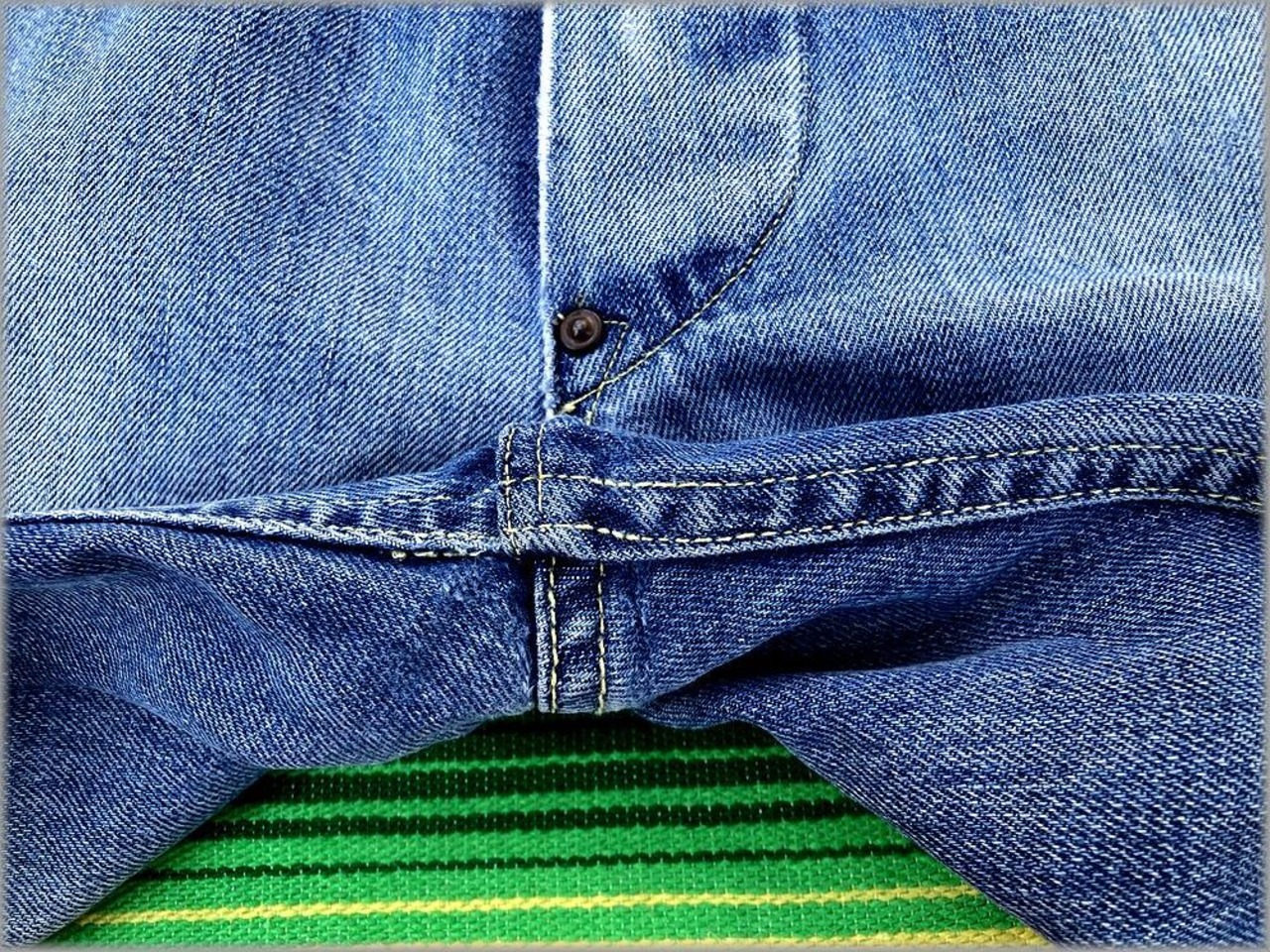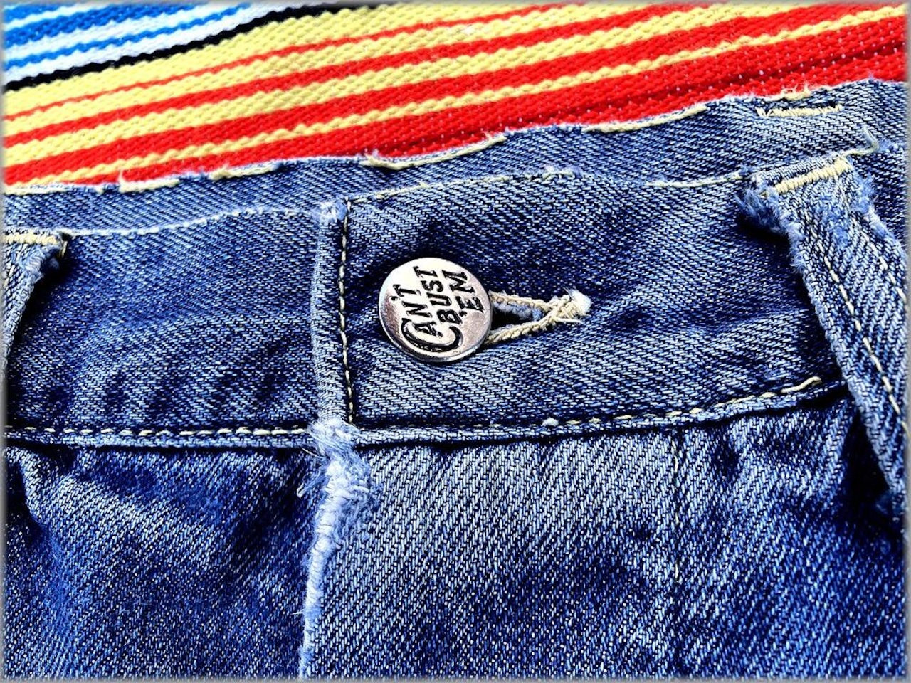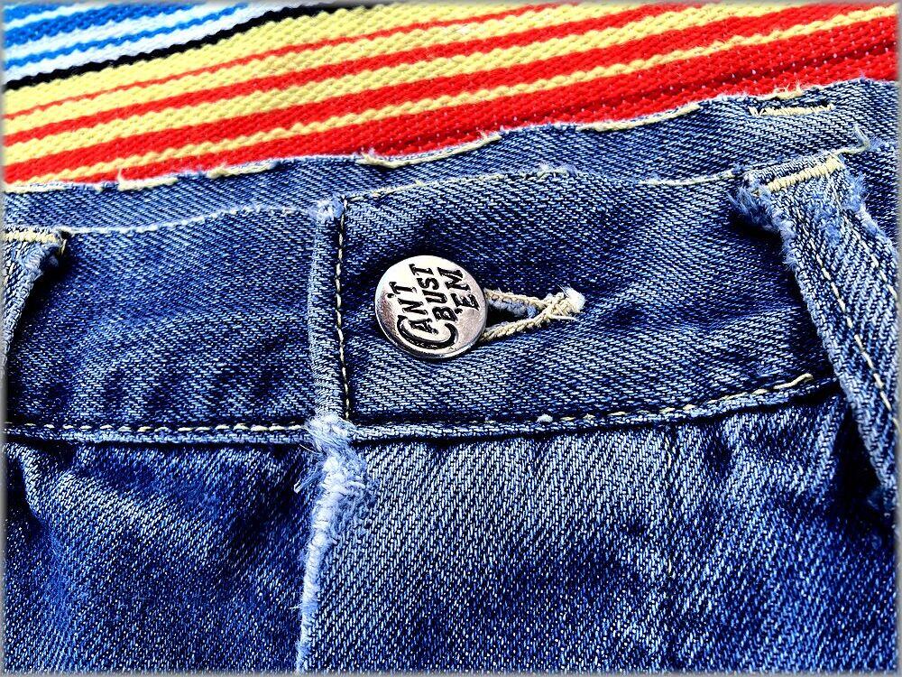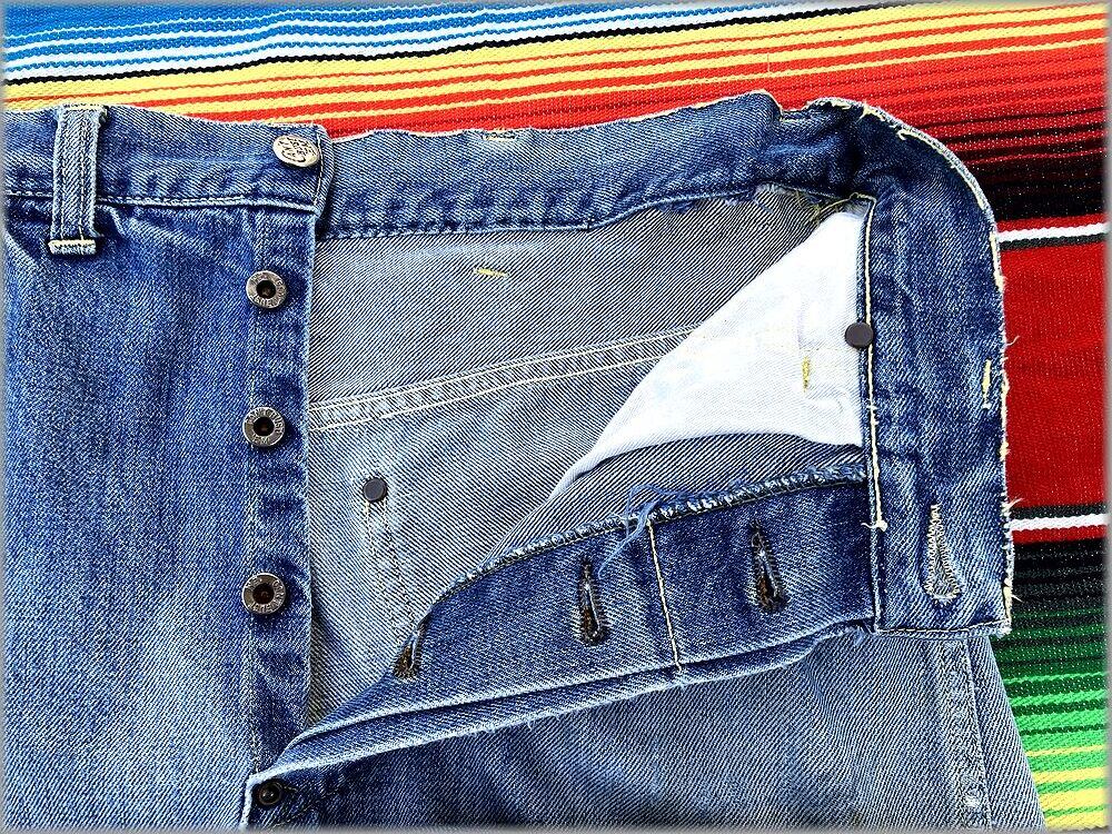 ドーナツボタン、股リベット、剝き出しリベット等のビンテージのディテールが付いています。