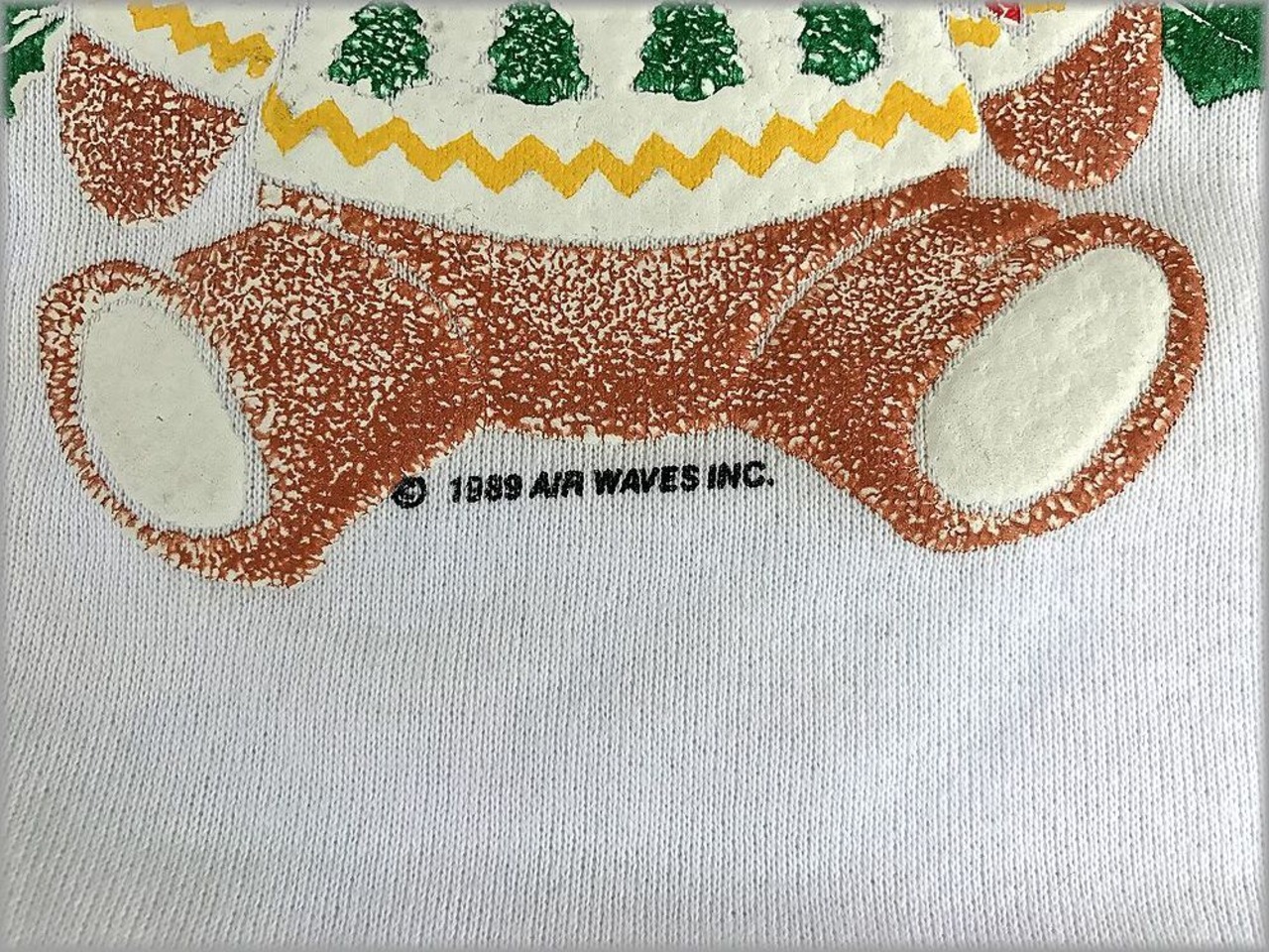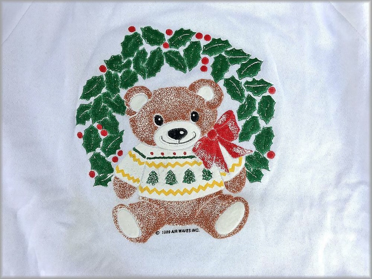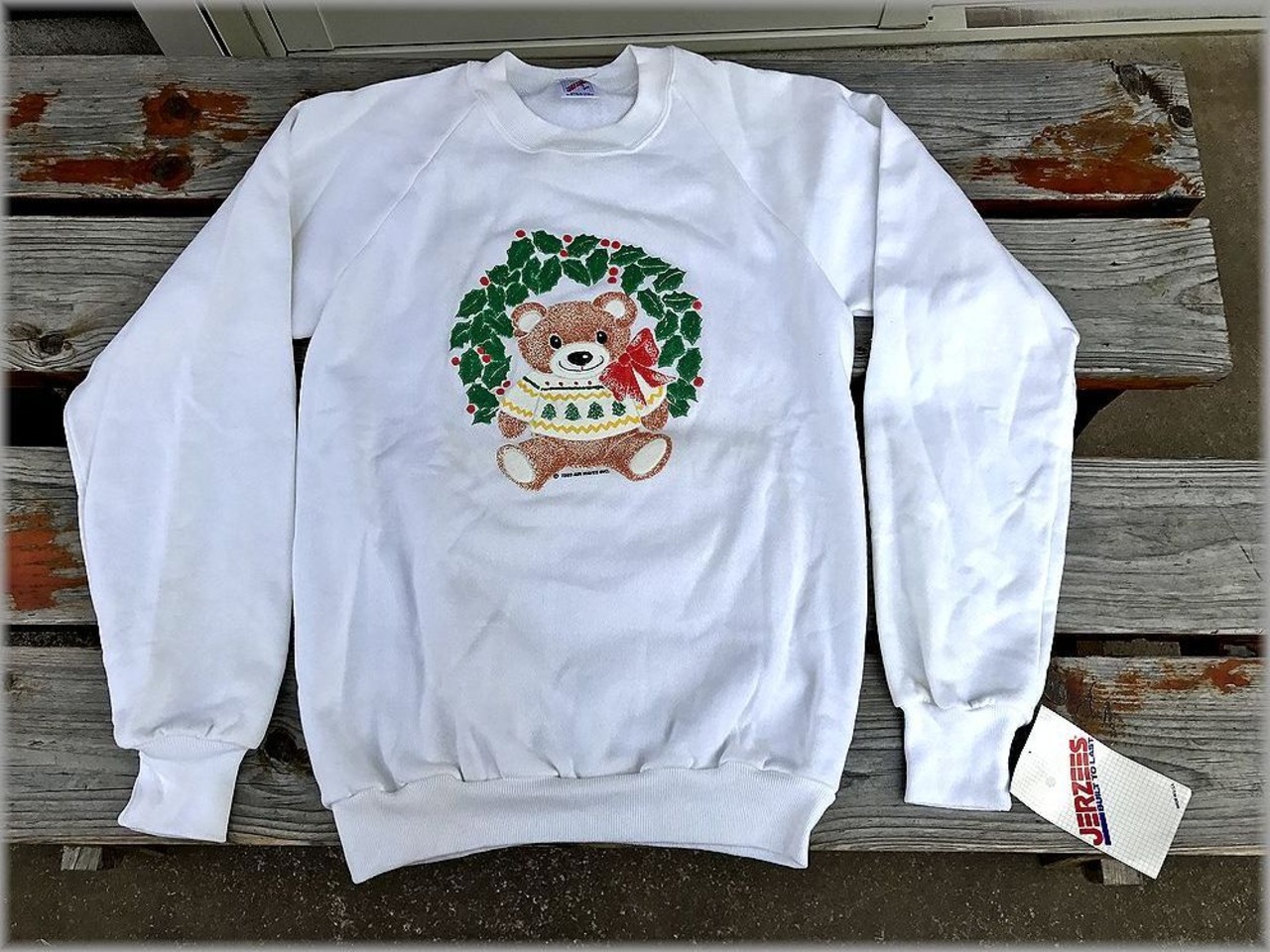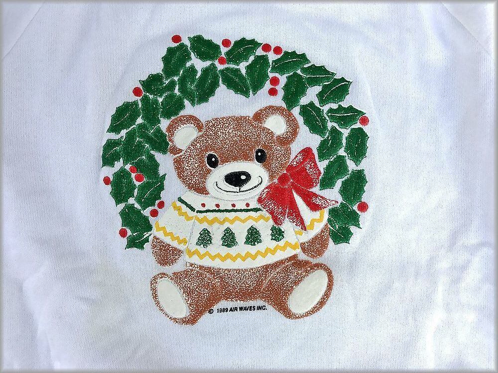 ★80s デッドストック USA製 JERZEES スウェット トレーナー size S 白★検索 クリスマス 熊 テディベア プリント ビンテージ 90s 古着