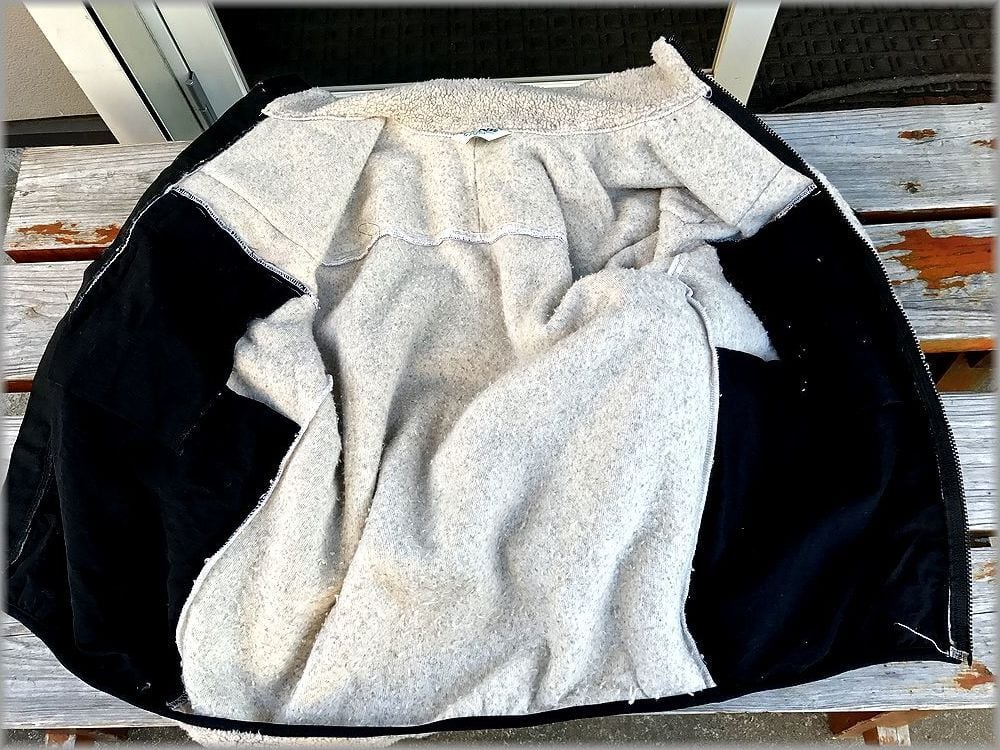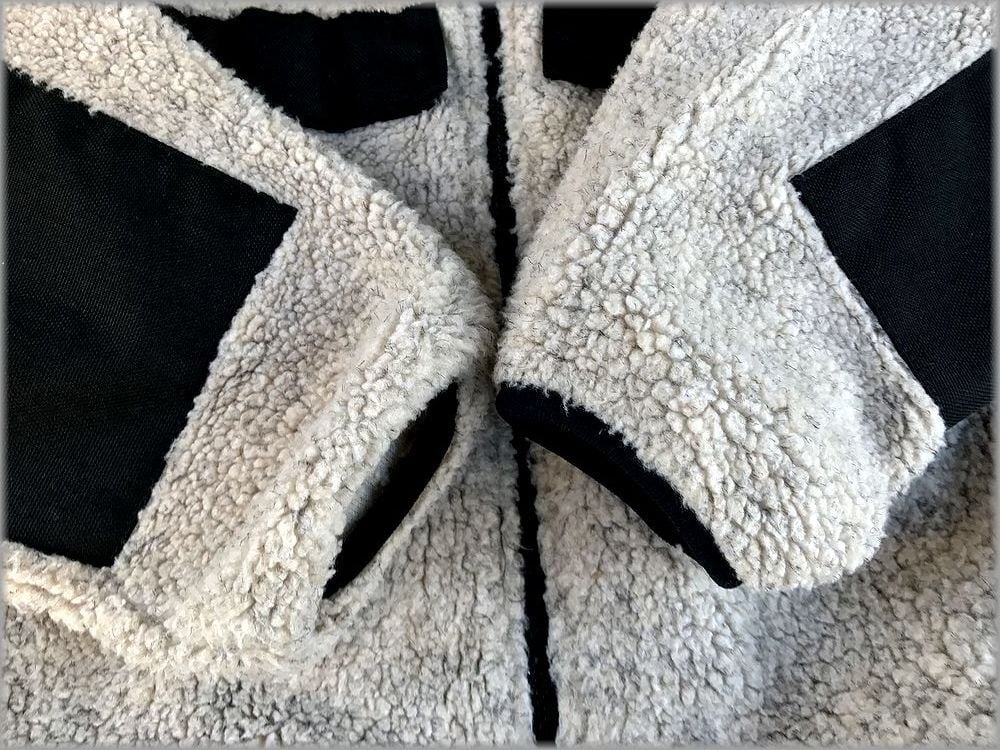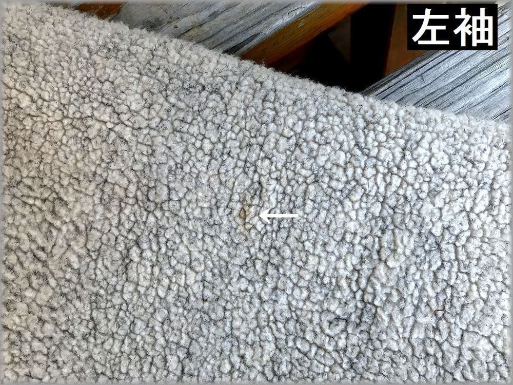 USEDです。パイル系特有の裏地の毛玉はありますが、使用感は少なめです。左袖に画像矢印先の軽い汚れはありますが、目立つような問題はありません。USEDとしては良好な状態です。