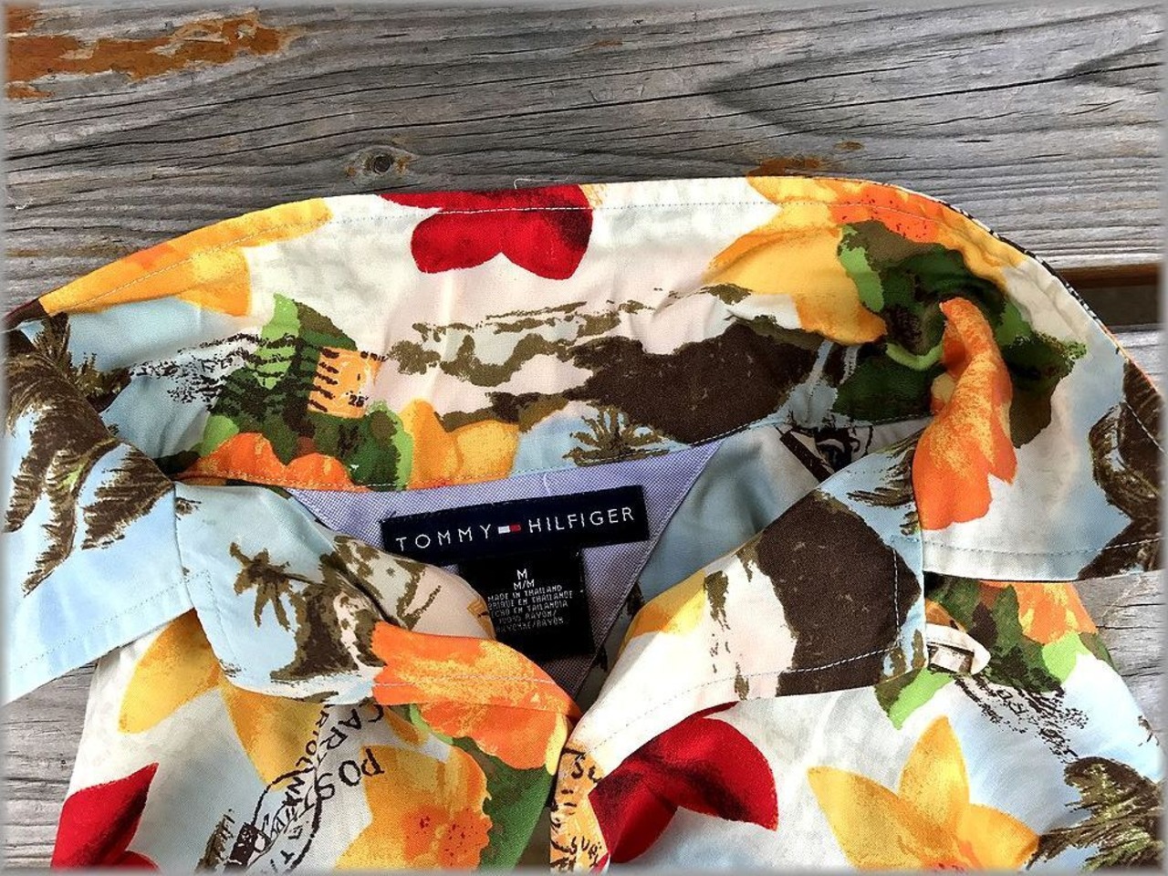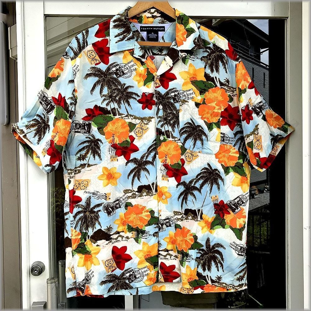 ★トミーヒルフィガー 00s レーヨン 半袖 開襟シャツ size M ビッグシルエット★検索 90s ビンテージ アロハシャツ ハワイアンシャツ