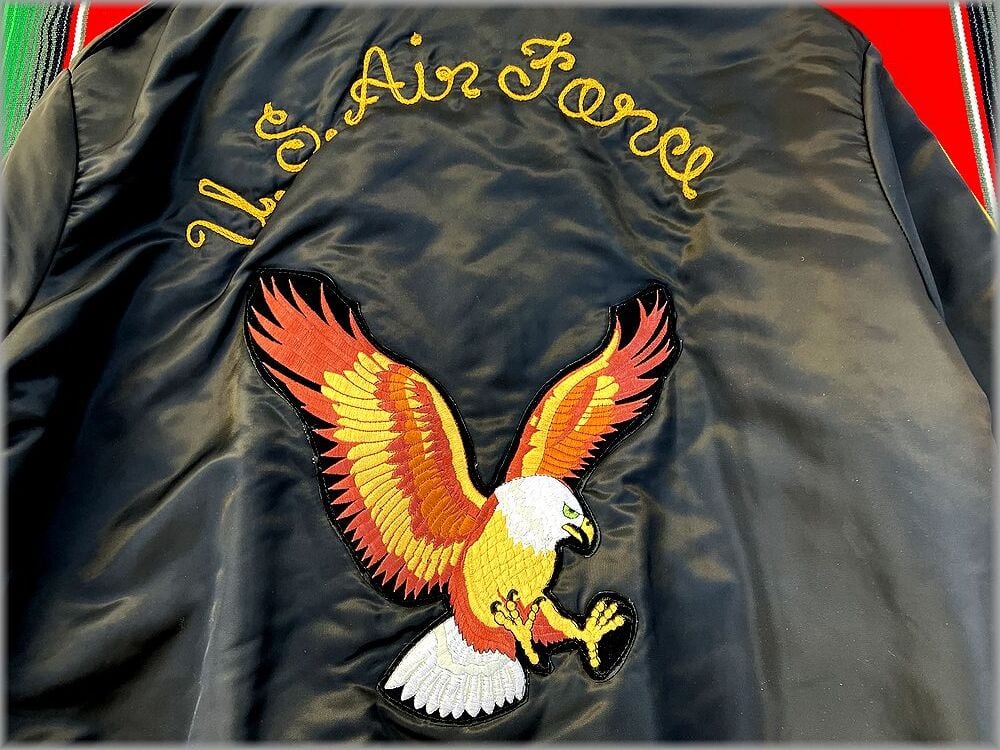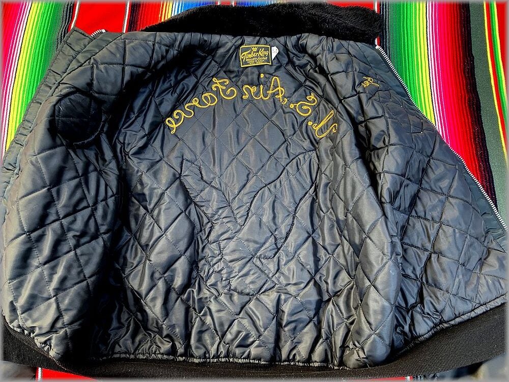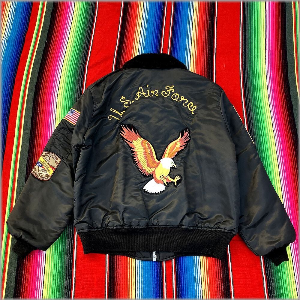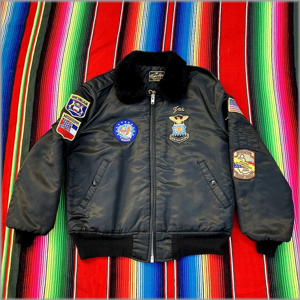 ★80s 90s Timber KIng ミリタリー ジャケット US AIR FORCE 刺繍 ワッペン size L ブラック★検索 ビンテージ 米軍 スカジャン スーベニアジャケット