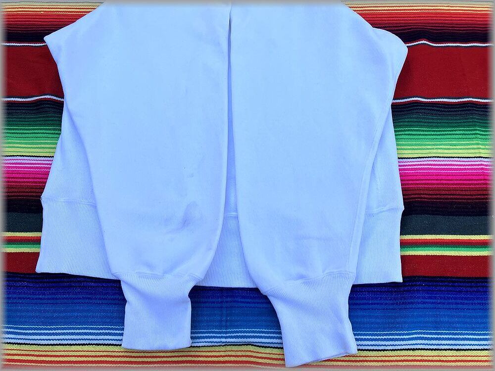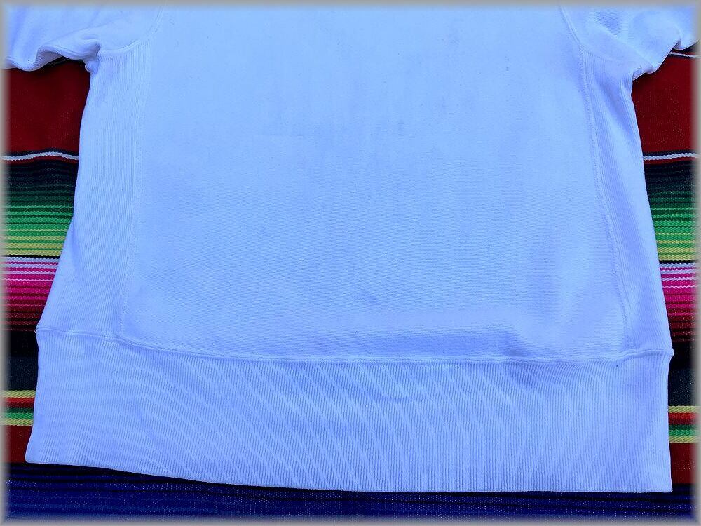 USEDです。ボディに多少の汚れがあります。左袖のチャンピオンのロゴ部分にダメージがあります。ボディが白で画像ですと汚れが見えにくいので、状態が心配な方は店頭でご確認ください。