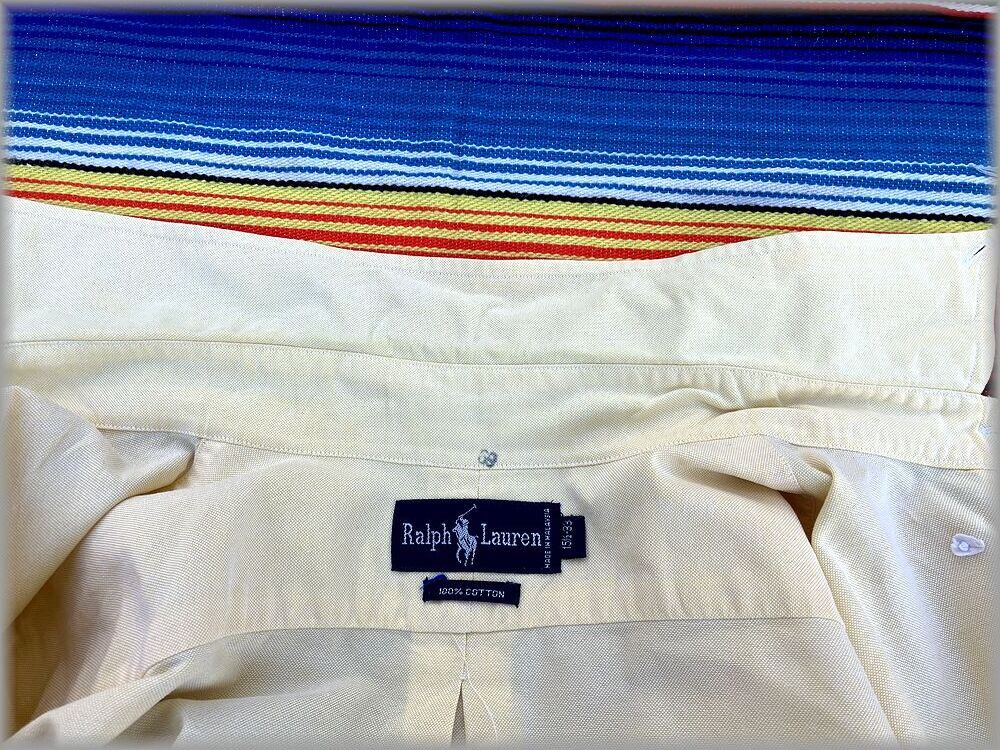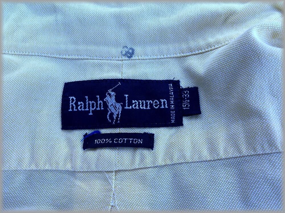 ★ポロ ラルフローレン 90s オックスフォード地 長袖 ボタンダウンシャツ 外タブ付き 15 1/2-33★検索 ビンテージ アメリカ 古着 80s