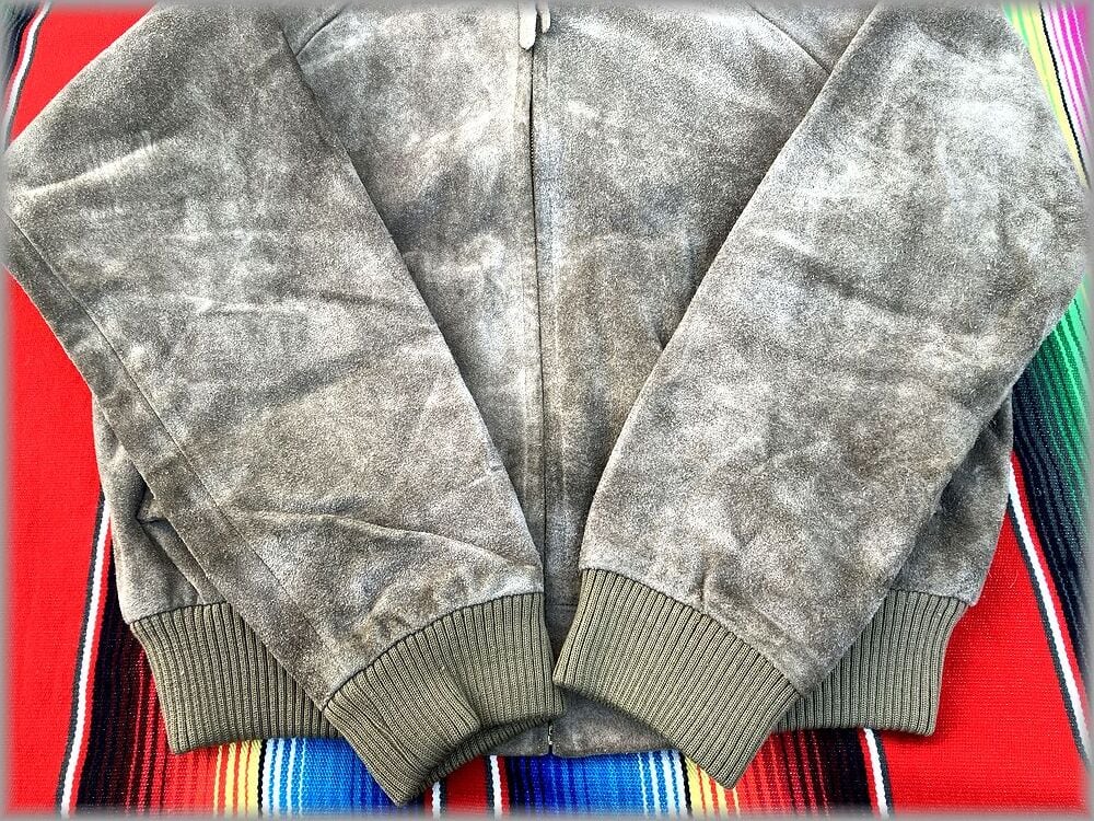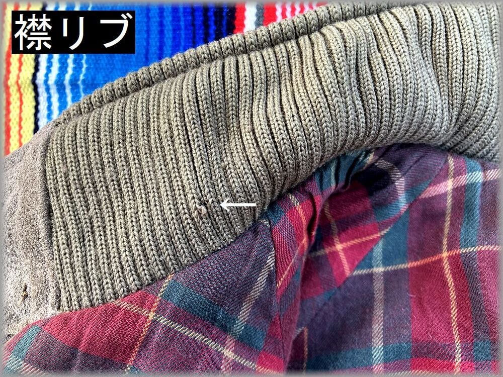 USEDです。襟の内側のリブに画像矢印先の小キズがあります。スエード特有の色ムラがあります。(それもこのジャケットの味かと思います)スエードに軽い擦れや汚れはあります。USEDとしては問題無く着用いただける状態ですが、状態が心配な方は店頭でご確認ください。