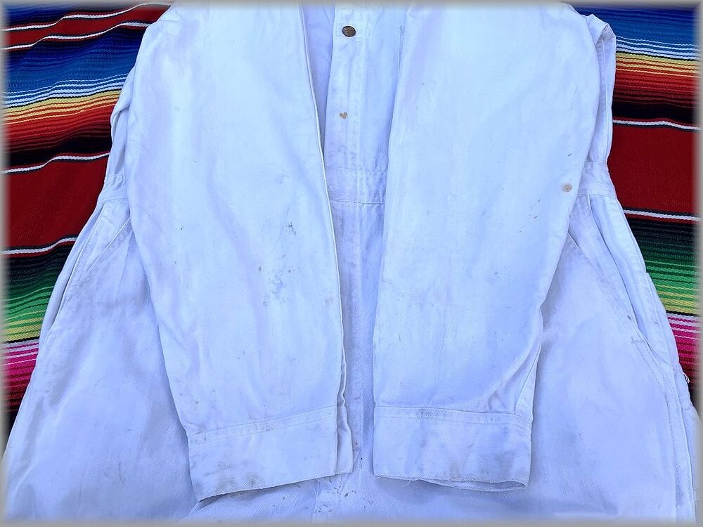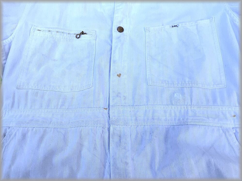 ★LEE UNION-ALLS 60s 70s USA製 HBT つなぎ 白 size 44R 汚れ リペア タロンジッパー★検索 ビンテージ オールインワン カバーオール オーバーオール