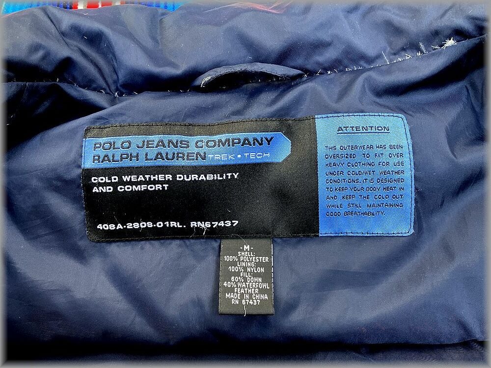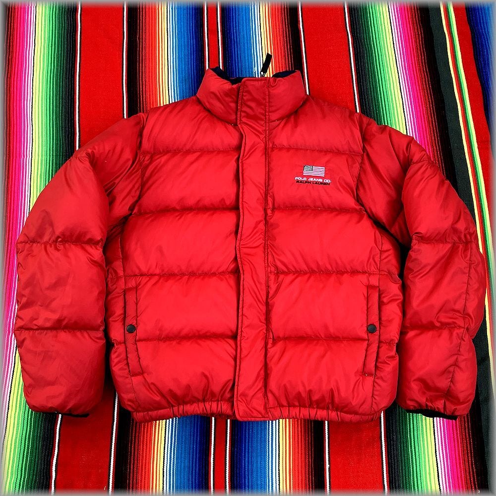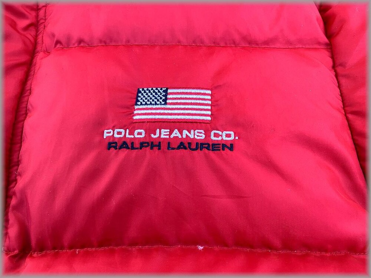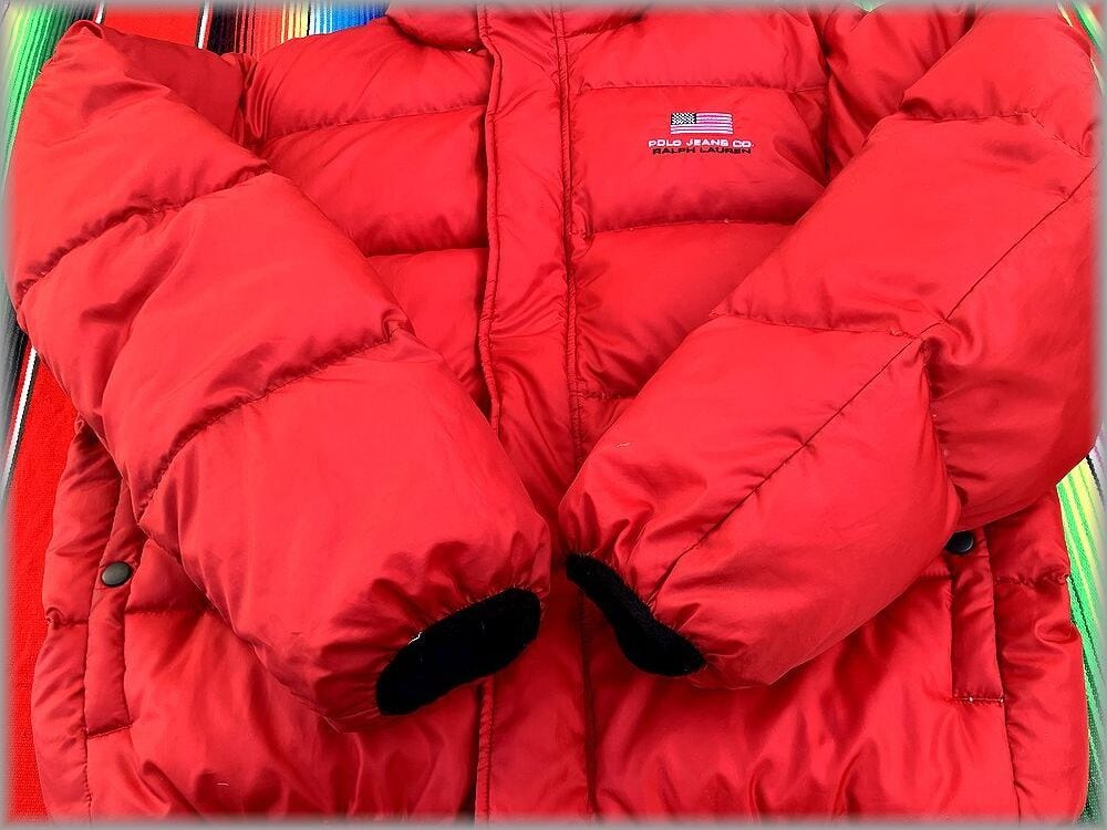 ★ポロジーンズ 90s ダウンジャケット size M 大きめ 赤★検索 ラルフローレン 星条旗