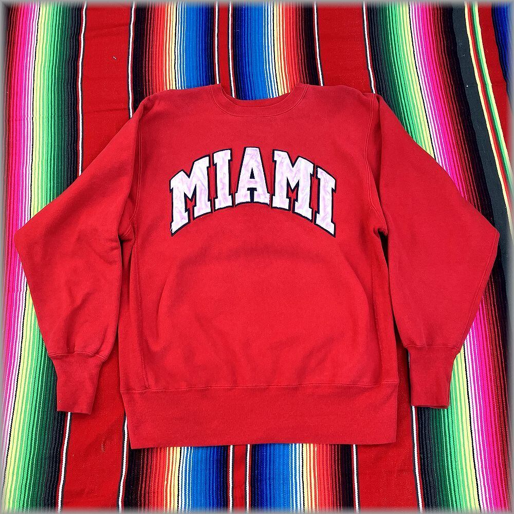★チャンピオン 90s USA製 刺繍タグ リバースウィーブ MIAMI size L 赤★検索 ビンテージ スウェット トレーナー カレッジ