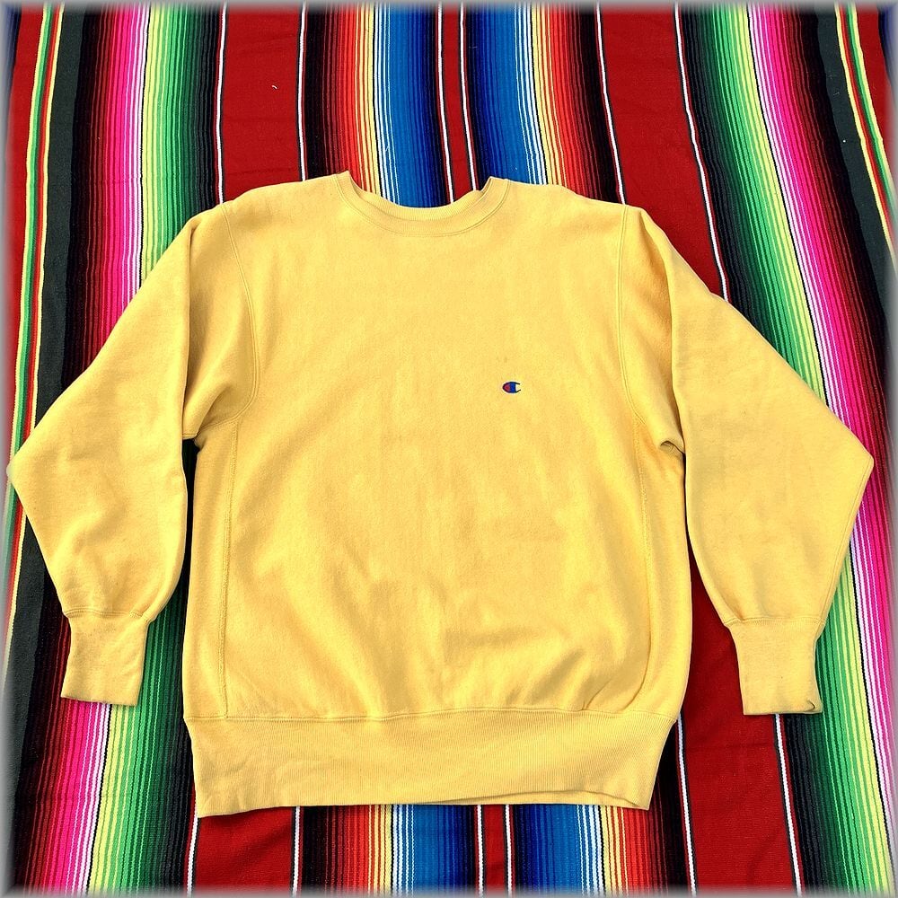 ★チャンピオン 90s USA製 刺繍タグ リバースウィーブ size XL 無地 黄色 マスタード★検索 ビンテージ スウェット トレーナー
