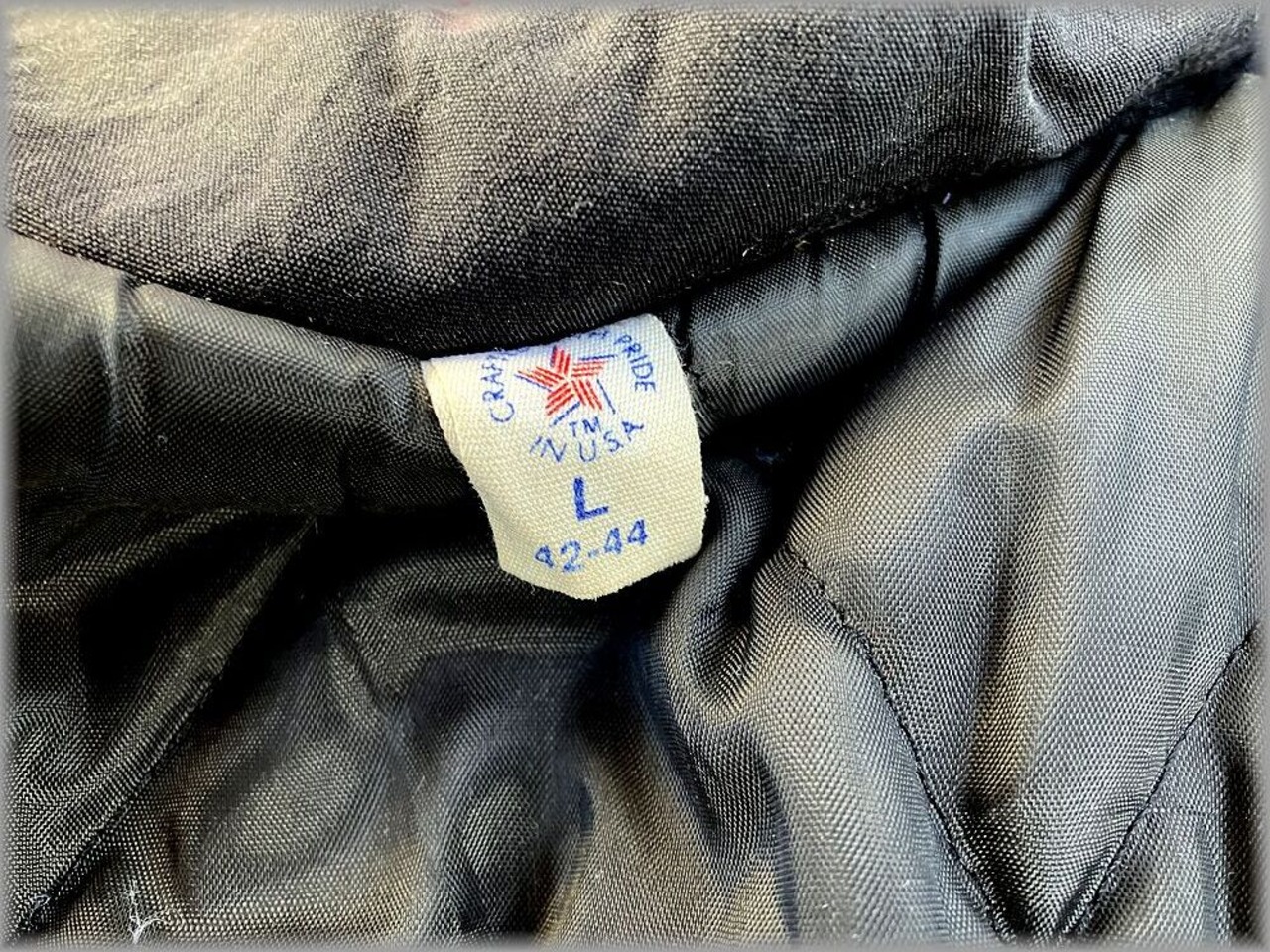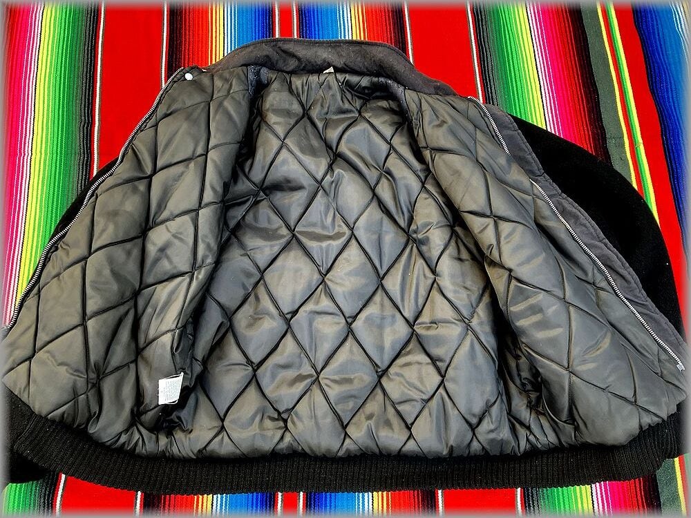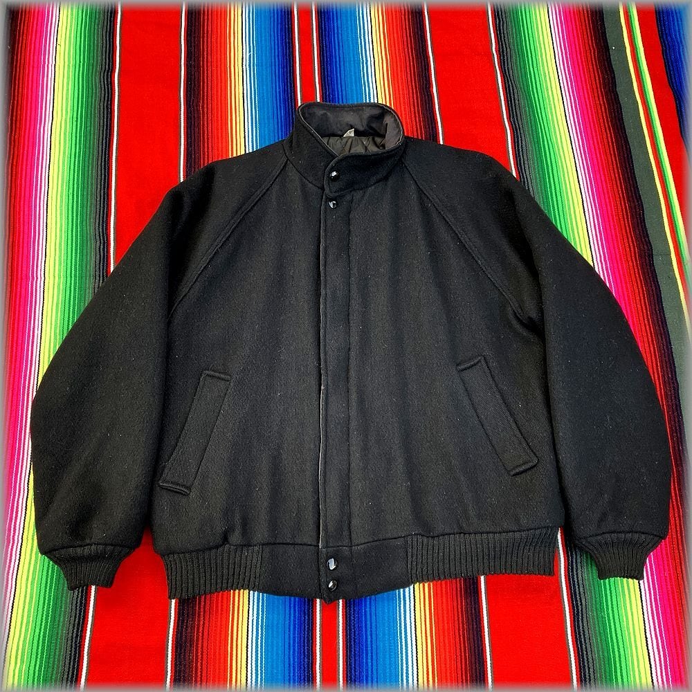 ★80s 90s USA製 中綿入り ウールジャケット size L ブラック 黒★検索ビンテージ アメリカ 古着
