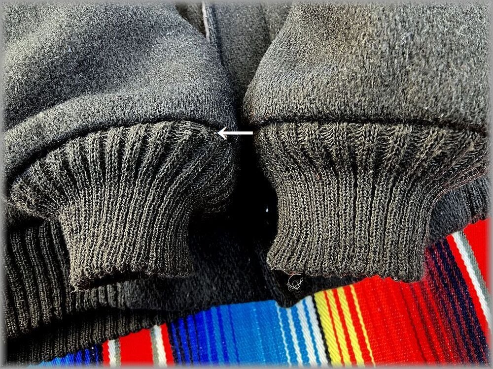 USEDです。多少の使用感や、右袖リブの矢印先部分のキズなどはありますが、目立つような問題はありません。USEDとしては問題無く着用いただける状態です。