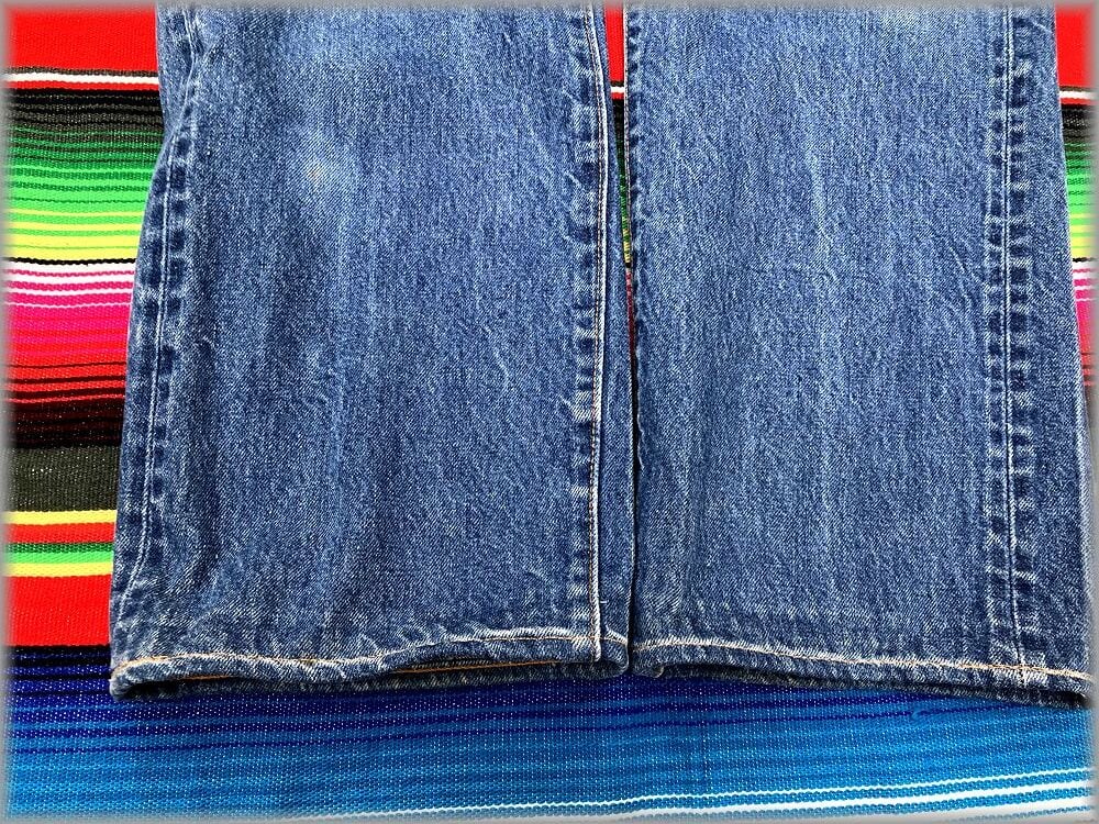 USEDです。デニムの色は濃紺という程ではありませんが濃いめに残っている部分と、色落ちによる濃淡がありアタリも出てきています。デニムに軽い汚れ程度はありますが、目立つような問題はないです。リペアはありません。主な部分は画像で載せてありますのでご確認ください。状態を一つ一つ説明するのは難しいので、状態が心配な方は店頭でご確認ください。
