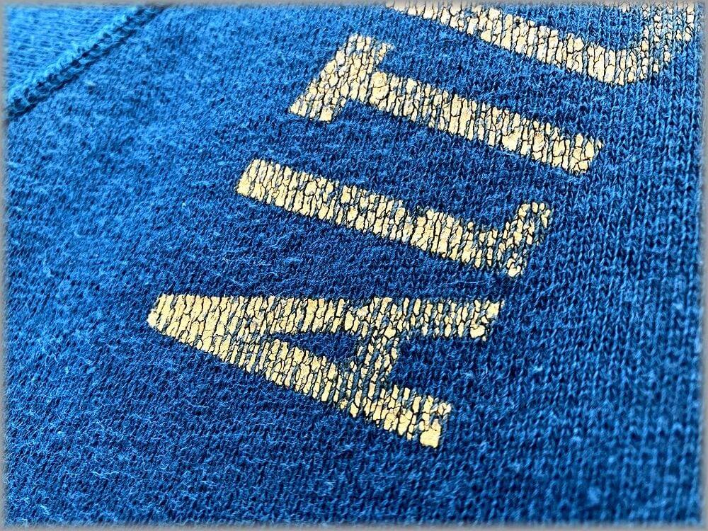 USEDです。少し汚れやフェードがあります。多少プリントの剥げもあります。左袖(脇に近い方 画像矢印先)の縫い目にステッチリペアがあります。ビンスエとしGては目立つような問題はありませんので、問題無く着用いただける状態です。状態が心配な方は店頭でご確認ください。