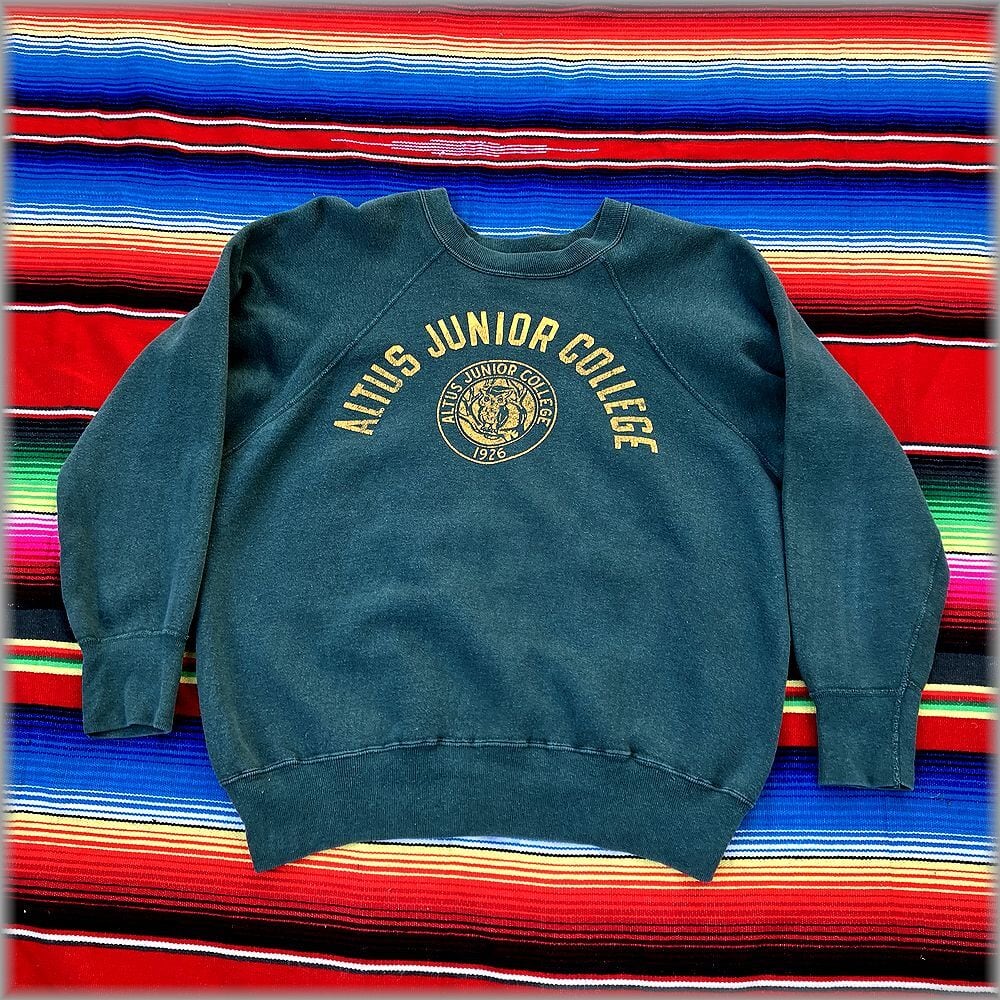 ★CHAMPION チャンピオン 60s ランタグ ビンテージ スウェット ALTUS JUNIOR COLLEGE size L 緑色★ トレーナー カレッジ