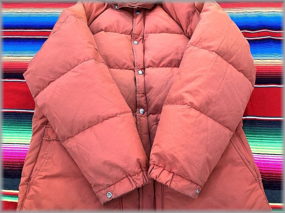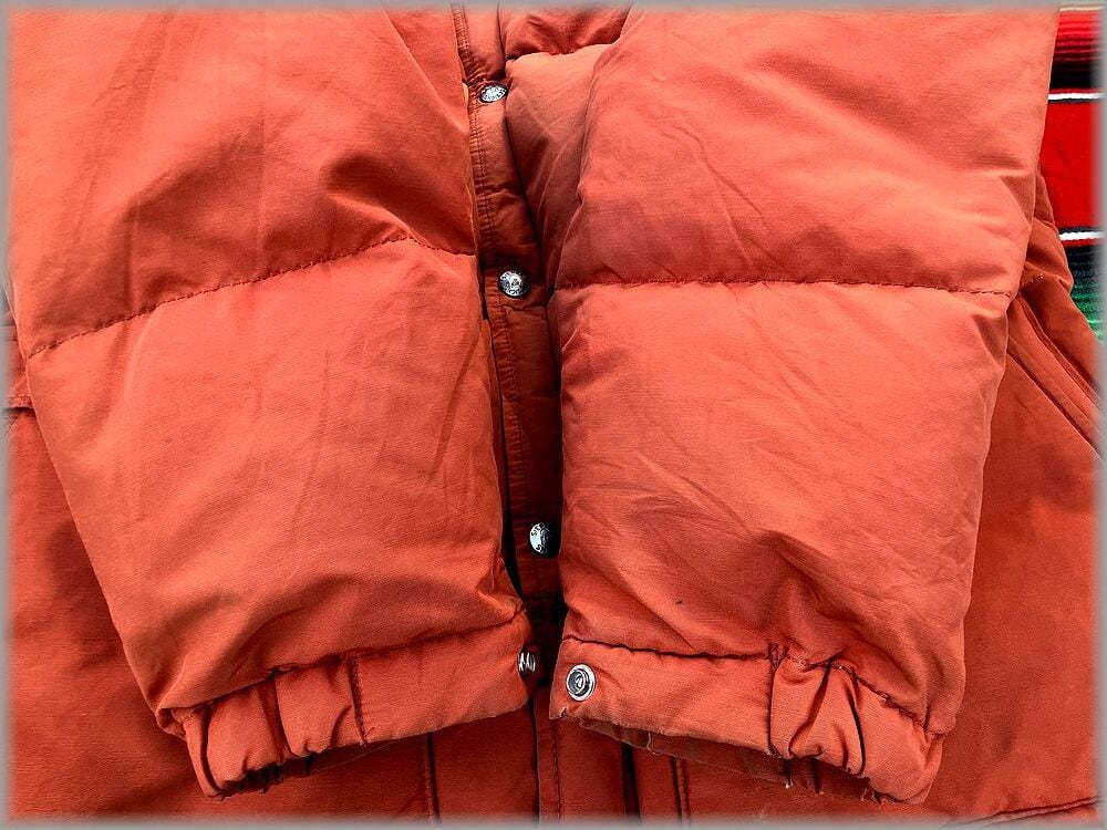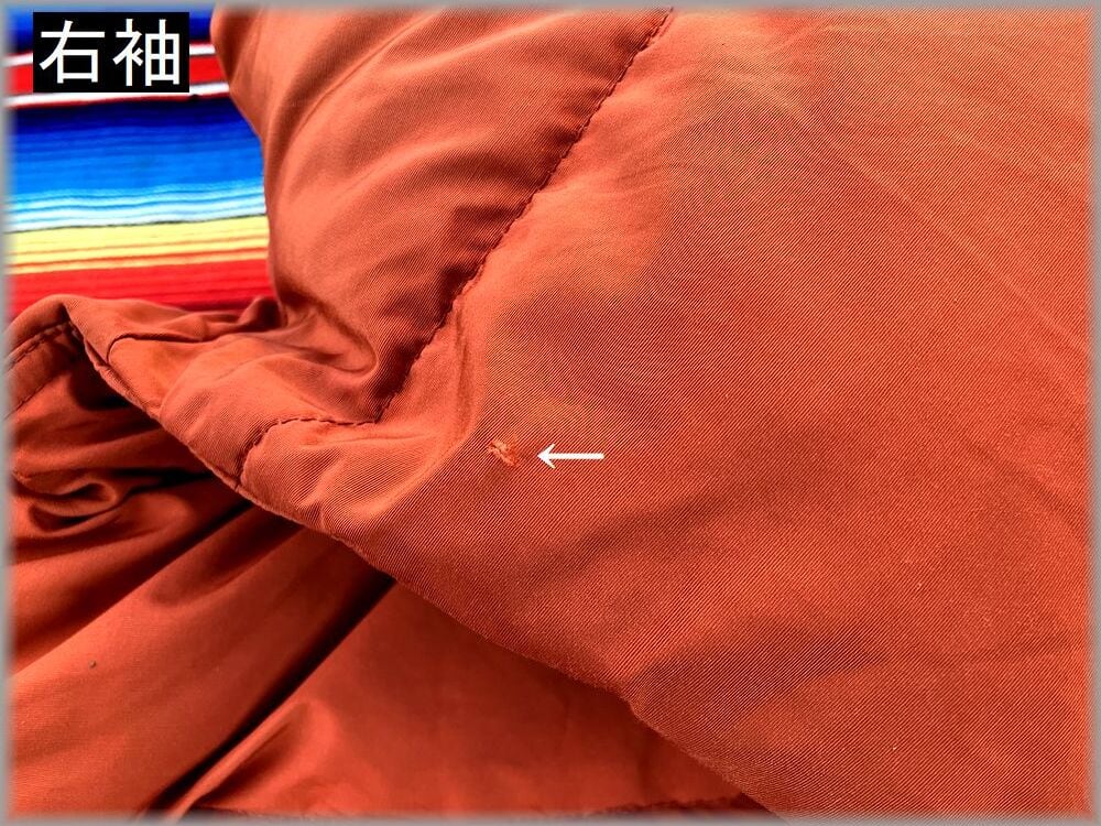 USEDです。シェルに多少の汚れやフェード、画像矢印先の小キズ、袖先の軽いイタミがあります。、目立つような問題は無いので、オールドアウトドアに慣れている方なら問題無く着用いただける状態かと思います。大まかな部分は画像に載せてありますのでご確認ください。状態が心配な方は店頭でご確認ください。