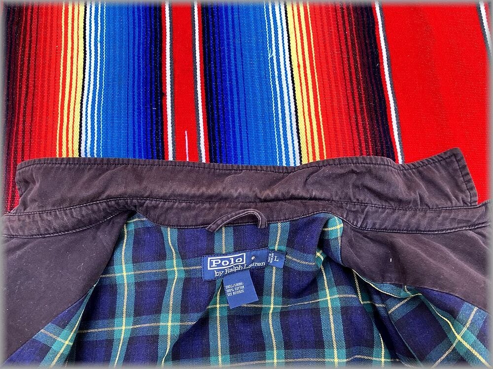 ★ポロ ラルフローレン 90s 00s フルジップ ジャケット スイングトップ ブラック チェック柄裏地 size L 大きめ★検索 ビンテージ ブルゾン アメリカ 古着
