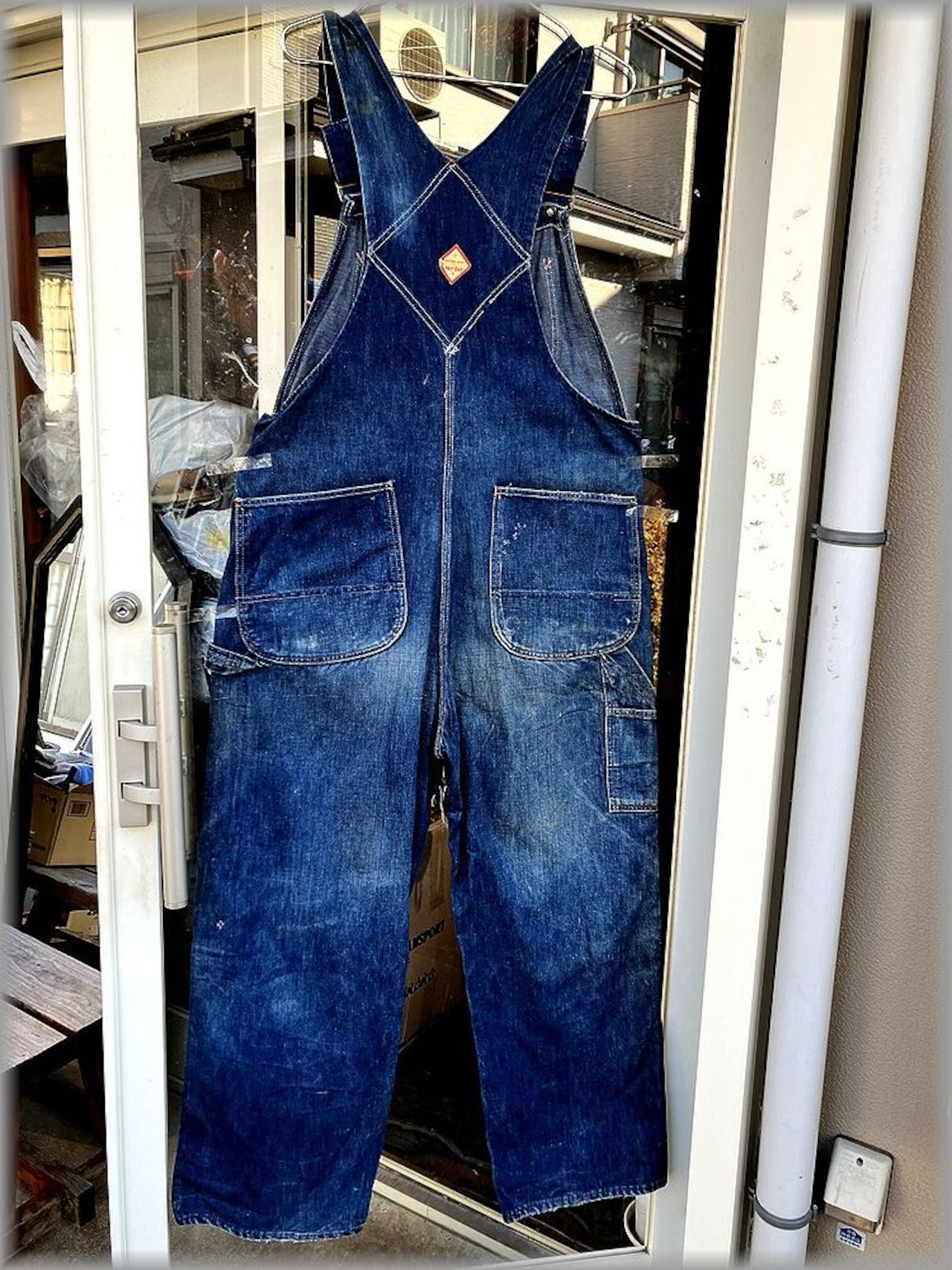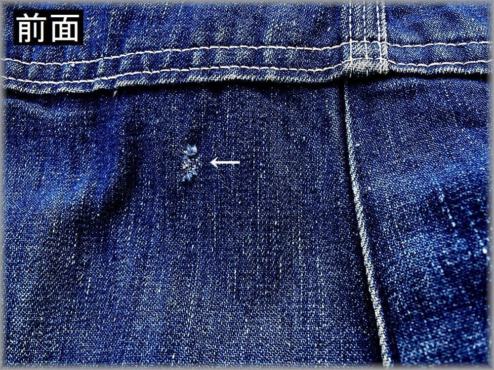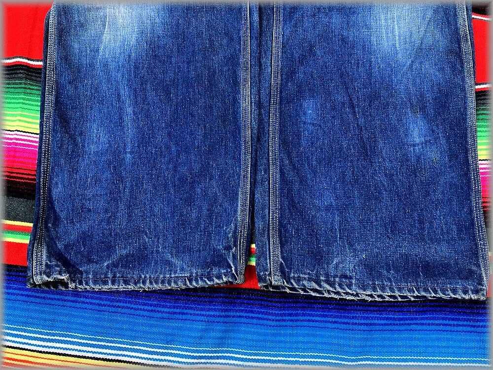 USEDです。デニムの色がまだ濃い部分と色落ちしている部分と濃淡があります。多少の汚れや、画像矢印先部分などのダメージ、裾の擦れやステッチの抜けなどもありますが、目立つような問題はないです。全体的にビンテージの素晴らしい雰囲気が出ているオーバーオールです。大まかな部分は画像に載せてありますのでご確認ください。状態が心配な方は店頭でご確認ください。