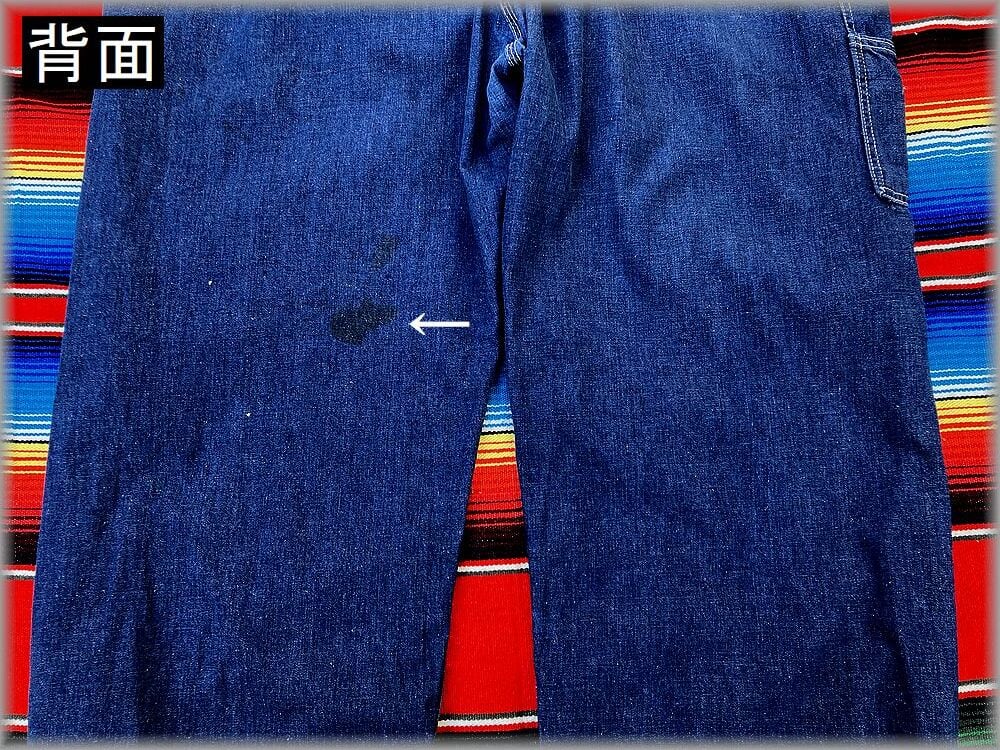 USEDです。デニムの色は全体的にまだとても濃いです。主に前面に画像のダメージがあります。背面の左足に画像の汚れがありますが、画像程実際は目立つ感じではないです。少しステチが解れている部分があります。大まかな部分は画像に載せてありますのでご確認ください。状態が心配な方は店頭でご確認ください。