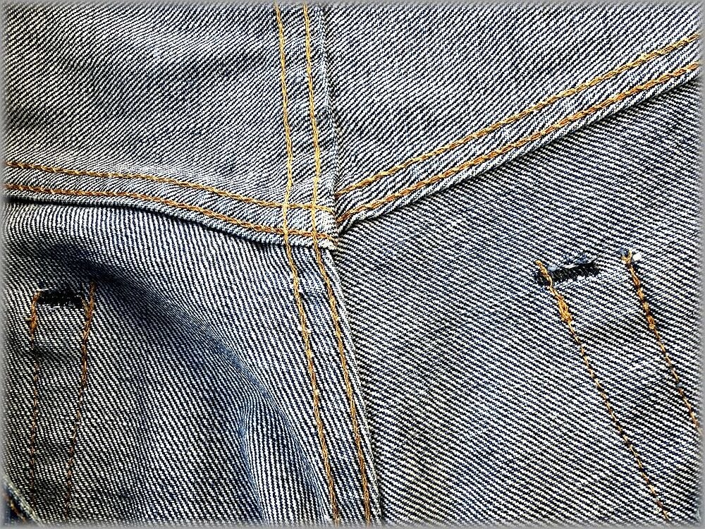 まだデニムの色は全体的に濃いめに残っていて、濃淡もあり縦落ちしていてとても良い雰囲気です。