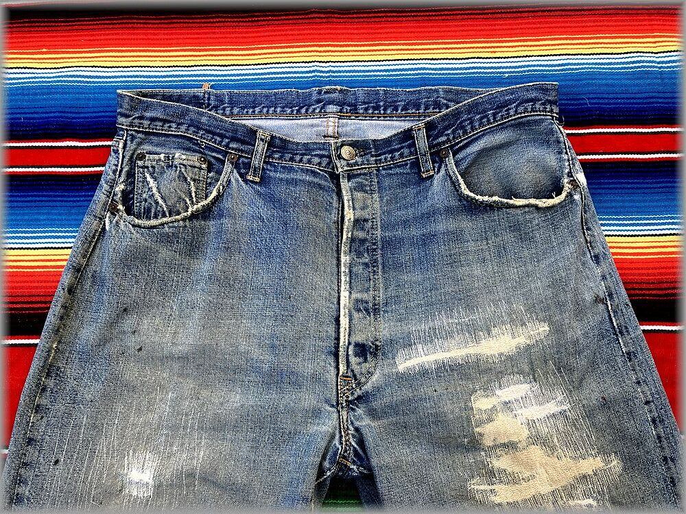 ★60s リーバイス 501 ビンテージ デニムパンツ ビッグE 初期 W100cm位 ビッグサイズ フロントVステッチ ウエストシングル 足長R★検索 XX 66 赤耳 ジーンズ 古着