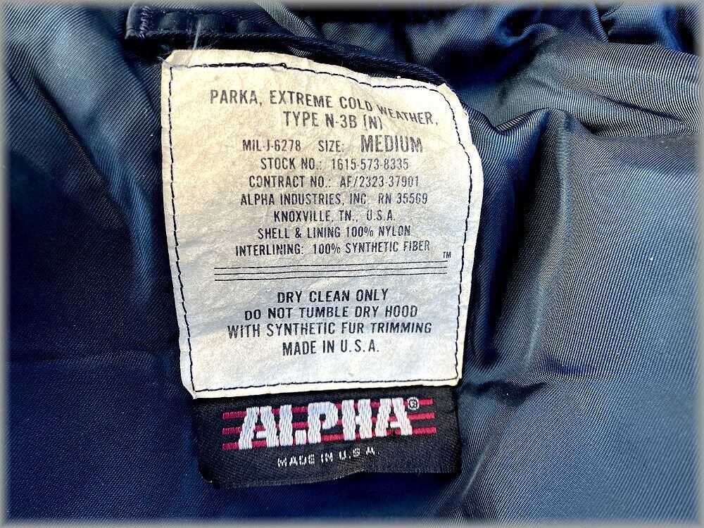 ★ALPHA INDUSTRIES アルファ 90s USA製 フライトジャケット N-3B 紺色 size M 大きめ ②★検索 ビンテージ ミリタリー 米軍 古着