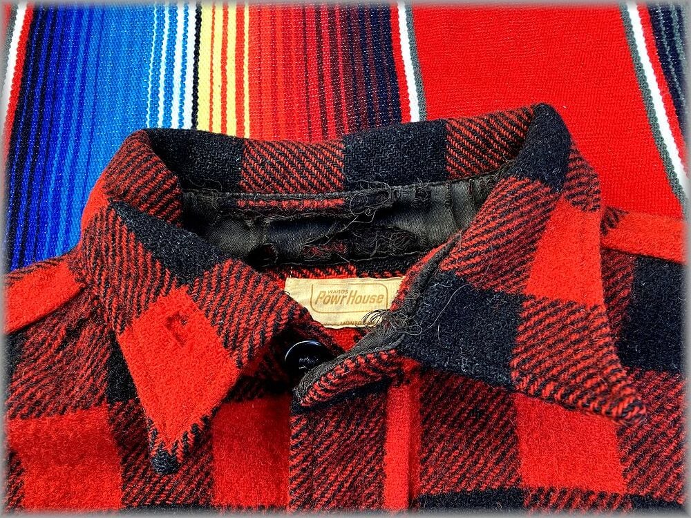 ★Powr House パワーハウス 60s ビンテージ 長袖 ウールシャツ マチ付き 赤×黒 ブロックチェック★