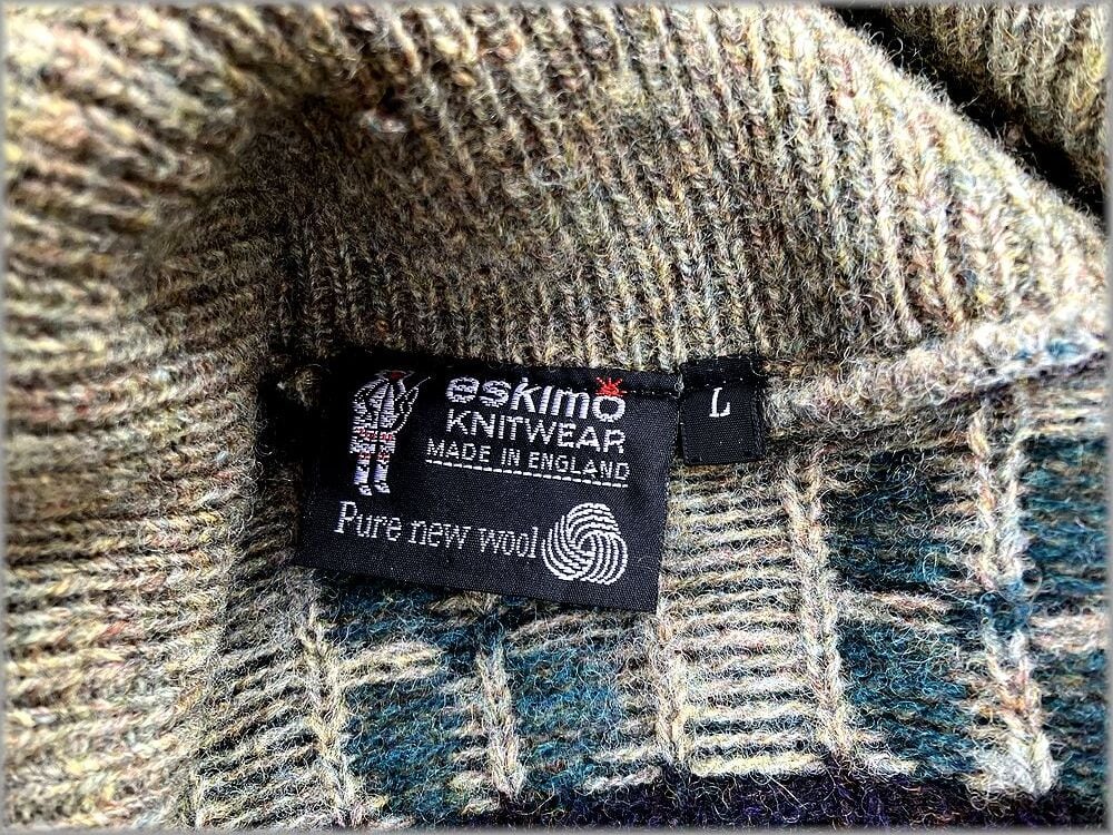 ★eskimo KNITWEAR 状態良好 英国製 ショールカラー ニットカーディガン size L★