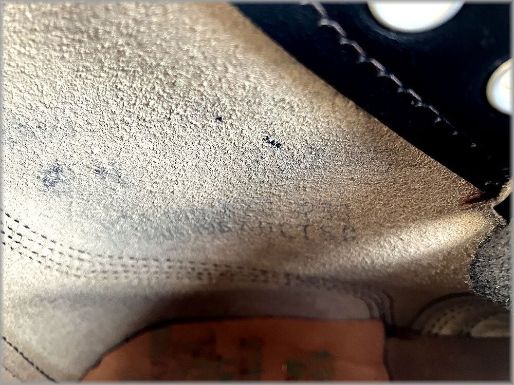 アウトソールの減りは全然無く、ほとんど使用は指定無い状態です。履き口に少しひび割れがあります。レザー表面に多少のキズがあります。目立つ程問題はありませんが、古い物ですので状態が心配な方は店頭でご確認ください。
