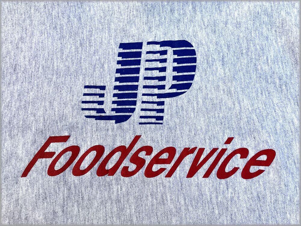 ★Champion チャンピオン 90s USA製 刺繍タグ リバースウィーブ JP FOODSERVICE 霜降りグレー 杢 size L★検索 ビンテージ スウェット トレーナー 企業物 アメリカ 古着