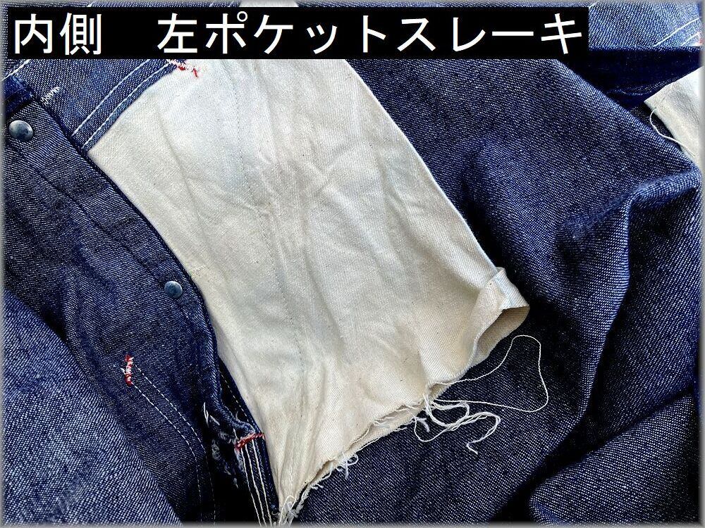 USEDです。多少の色落ちはありますが、デニムの色は全体的にまだ濃いです。裾に近い部分に擦れたダメージがあります。左ポケットのスレーキが途中で着られているようで貫通しています。大まかな部分は画像に載せてありますのでご確認ください。状態が心配な方は店頭でご確認ください。
