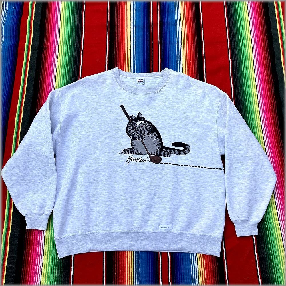 ★クリバンキャット crazy shirts USA製 スウェット トレーナー 霜降りグレー 両面プリント size L 大きめ★検索 ビンテージ 90s 00s ハワイ アメリカ スーベニア 古着